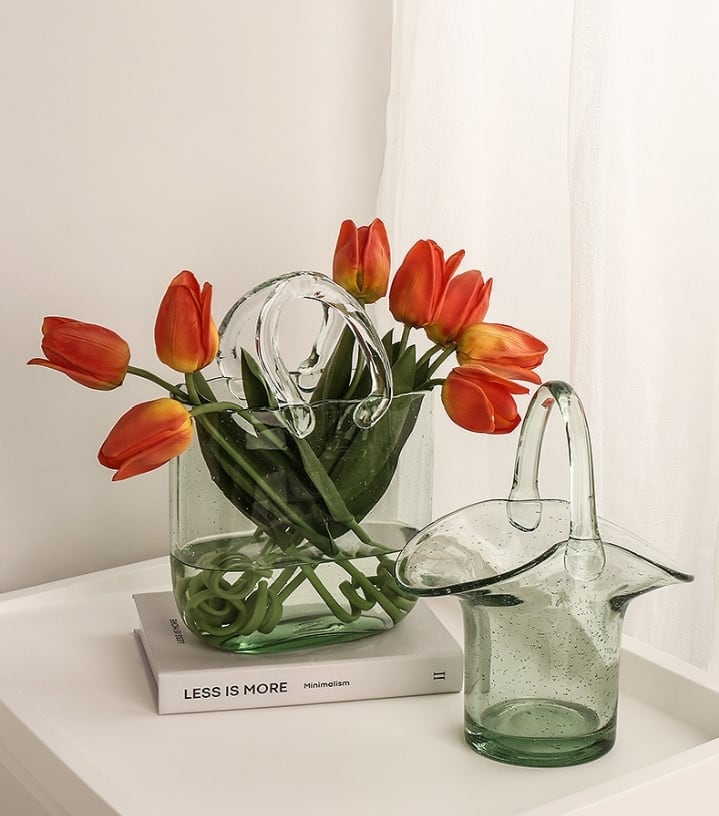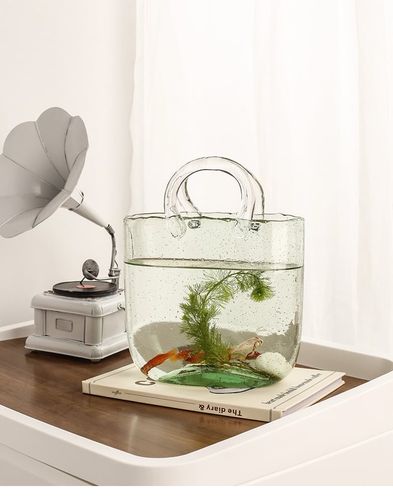 北欧 おしゃれ ガラスのカバン 花瓶 にも金魚鉢にもなる フラワーアレンジメントにもおすすめ クリアガラス フラワーベース