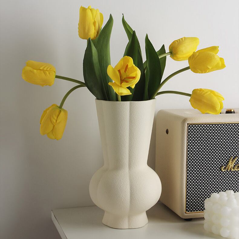 シンプルでスタイリッシュな白色陶瓷の花瓶は、どんなお部屋にも合わせやすく、おしゃれなインテリアのアクセントとして活躍します。