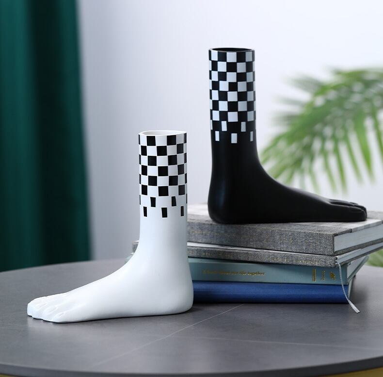 ホワイト&ブラック ドット柄 クリエイティブ レッグデザイン フラワーベース 花瓶
