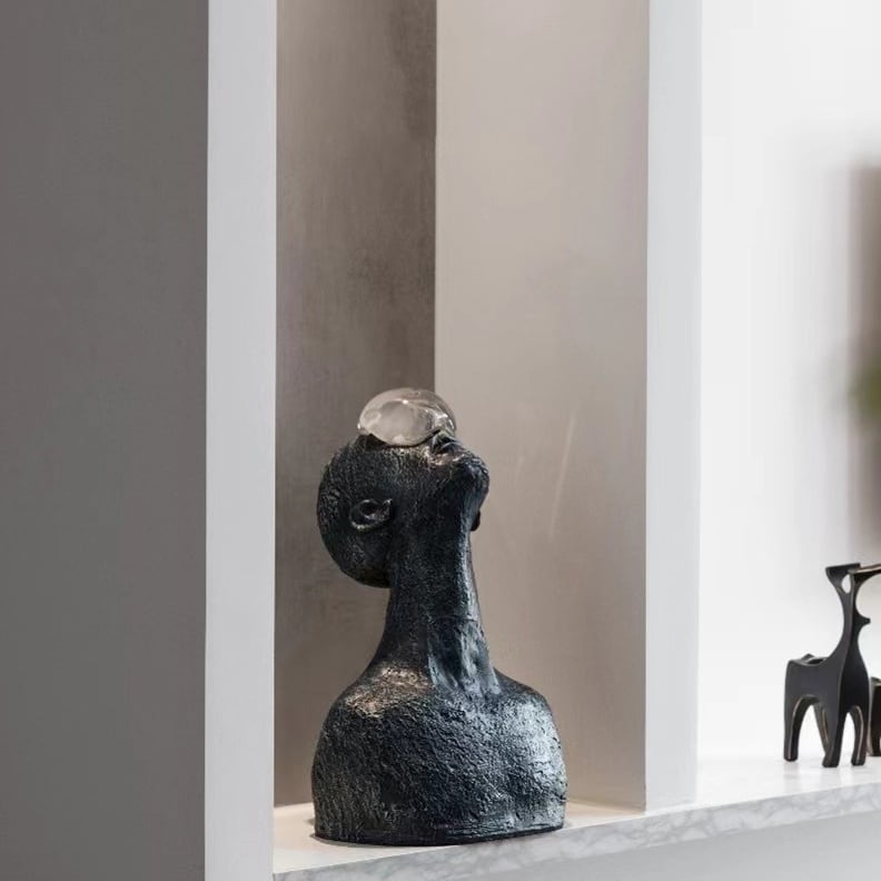 北欧の抽象アートと人体彫刻を組み合わせたインテリア