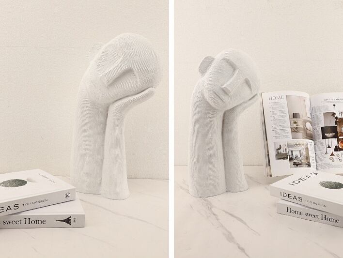 興味深いデザインで知られる人形の形をした装飾品です。その特徴的なポーズで、観る人の興味を引きつけます。リビングルーム、オフィス、または寝室など、どんな空間にもユニークなアクセントを提供します。首を傾げた人のインテリアは、他のデコレーションと組み合わせることで、独自のスタイリングやストーリーテリングが可能です。