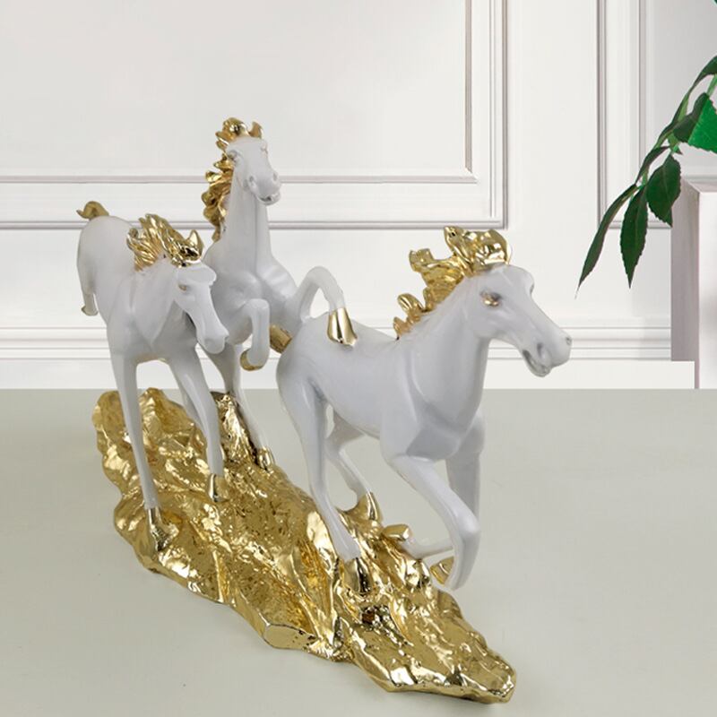 このレジン製の大型3連馬置物は、家庭用のソフト装飾品であり、午年の工芸品としても人気です。