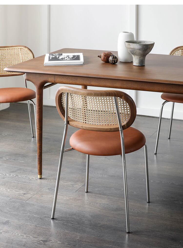 シンプルで洗練された北欧風籐編みダイニングチェアは、快適な座り心地とモダンなデザインが特徴です。