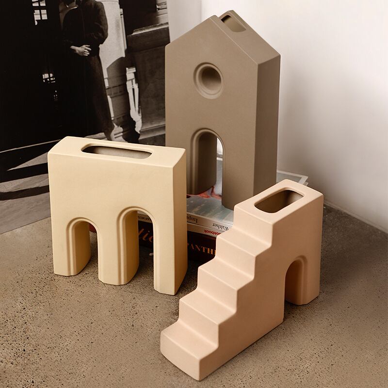 モダンで創造的なデザインの建築ジオメトリーセラミック花瓶は、リビングルームやテレビボードにアートな装飾をもたらします。