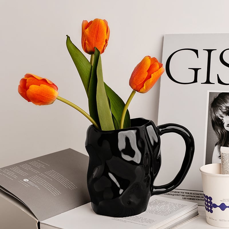 広口で大きな取っ手 セラミック製の花瓶 北欧スタイル