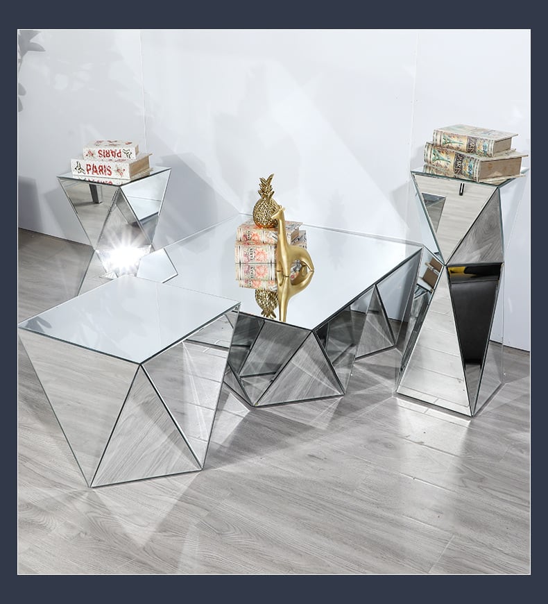人気シンプルなミラー付きベッドサイドテーブルとソファコーナーテーブルの組み合わせディスプレイ台