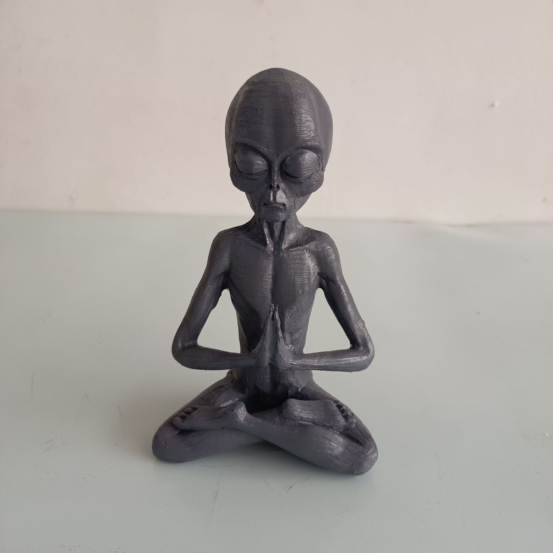エイリアンの姿勢と表情が瞑想の静けさと深さを表現しており、癒しの空間を演出します。丁寧な彫刻と繊細な塗装が施されています。独創的なデザインの置物をお探しの方におすすめです。