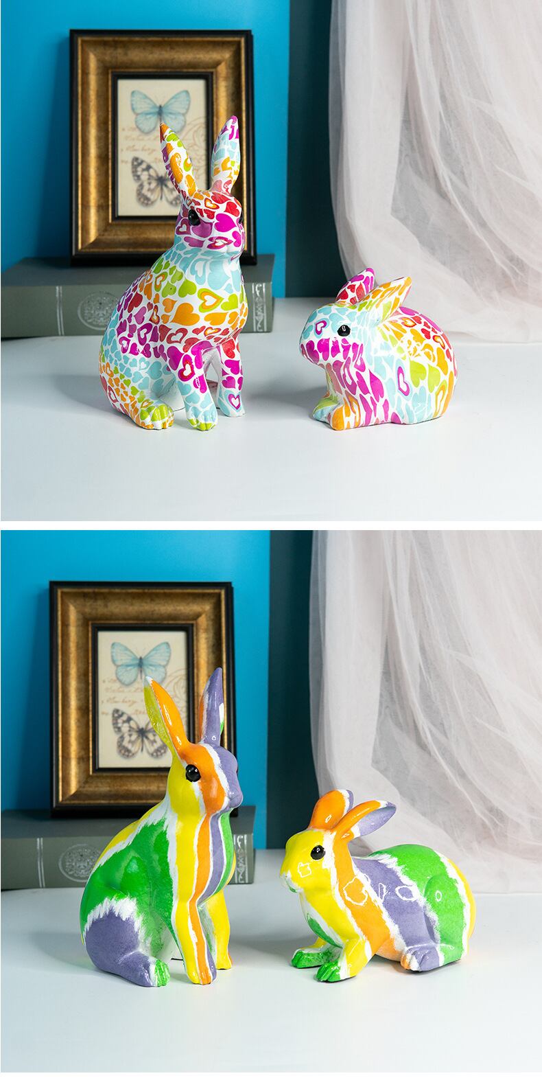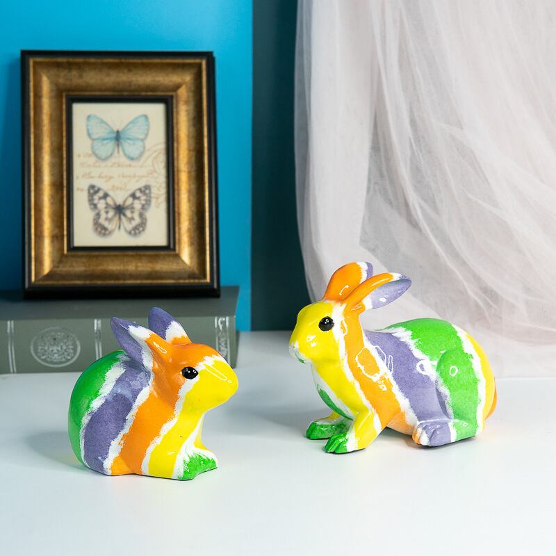 このモダンで可愛らしいカラフルなウサギの置物は、エキゾチックなカラーリングのアクリル製工芸品です。
