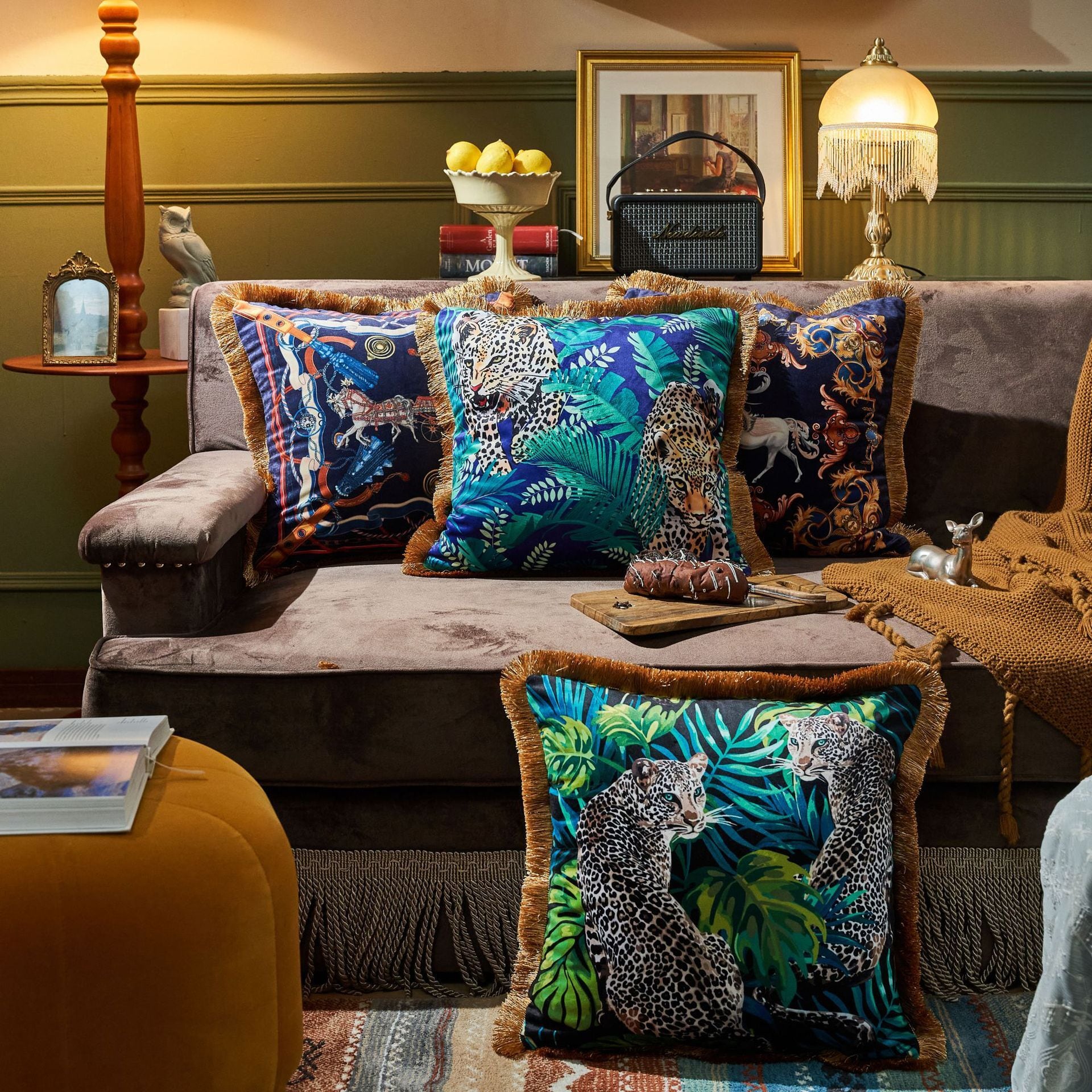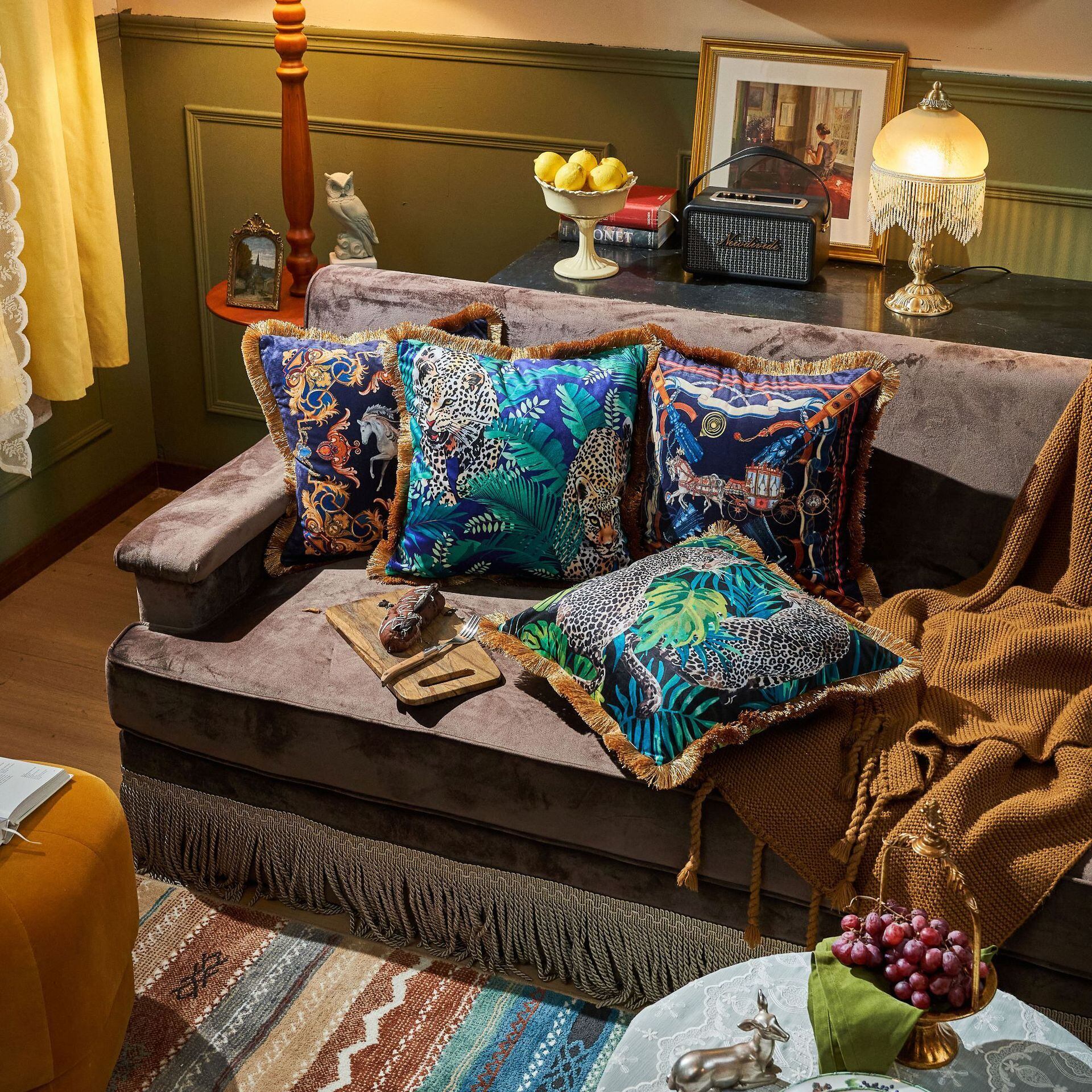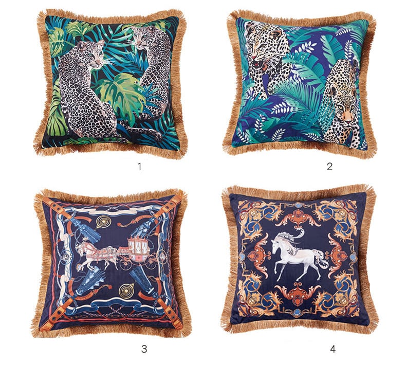 クリエイティブなフリンジ柄プリントクッションカバー、アメリカンスタイルのぬいぐるみ動物バッククッションカバー
