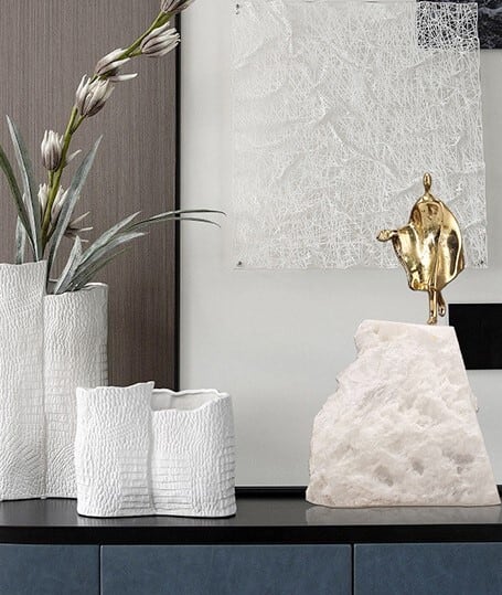 天然水晶石と黄銅の組み合わせにより、上品で優雅な空間を演出する装飾オブジェです。コンパクトサイズなので、リビングルームや寝室、オフィスなどさまざまな場所でお楽しみいただけます。心地よい癒しと豪華さを求める方にぴったりです。ぜひ、ご自宅やギフトにおすすめの逸品として、お手元にお迎えください。