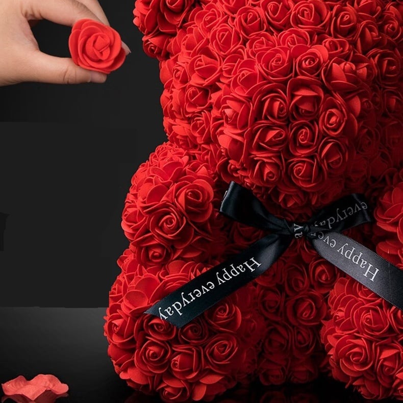 美しいプリザーブドローズを使って作られたクマの形をしたアレンジメントです。花束や花瓶とは一味違った個性的なデザインで、ギフトボックスに入っているため贈り物としても素敵です。