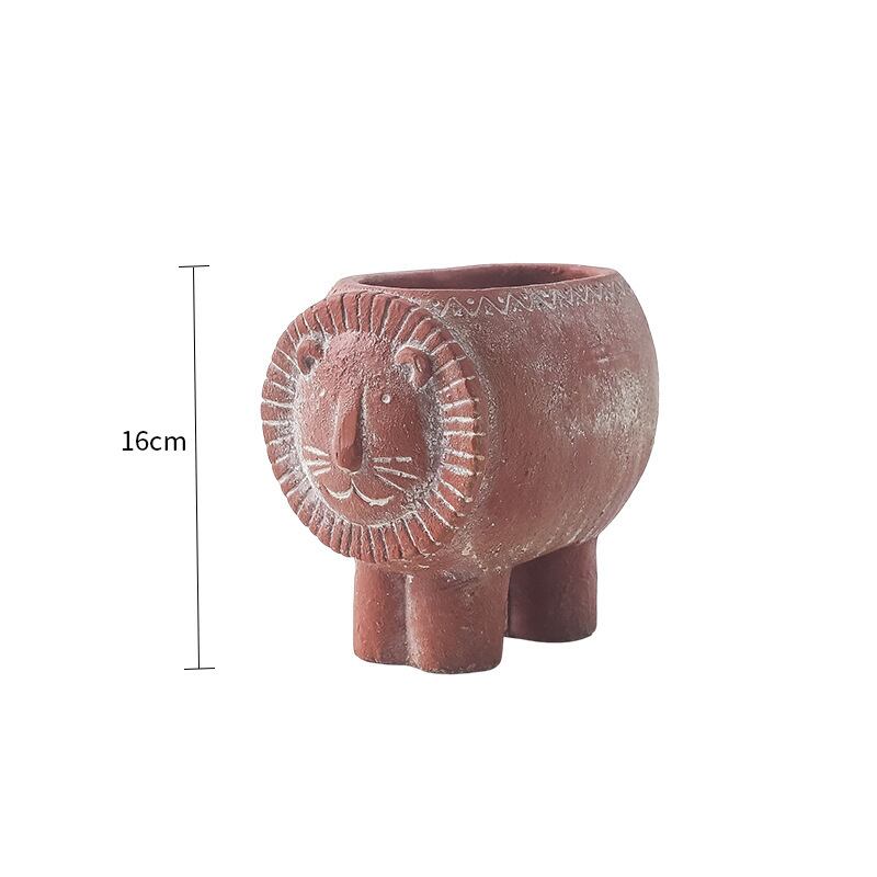 セメント素材の風合いが特徴で、インテリアに個性的なアクセントを与えます。この植木鉢は丈夫で長持ちするので、お庭やベランダでの使用もおすすめです。ライオンのデザインは力強さと王者の象徴を表現しており、存在感のあるインテリアアイテムとなることでしょう。