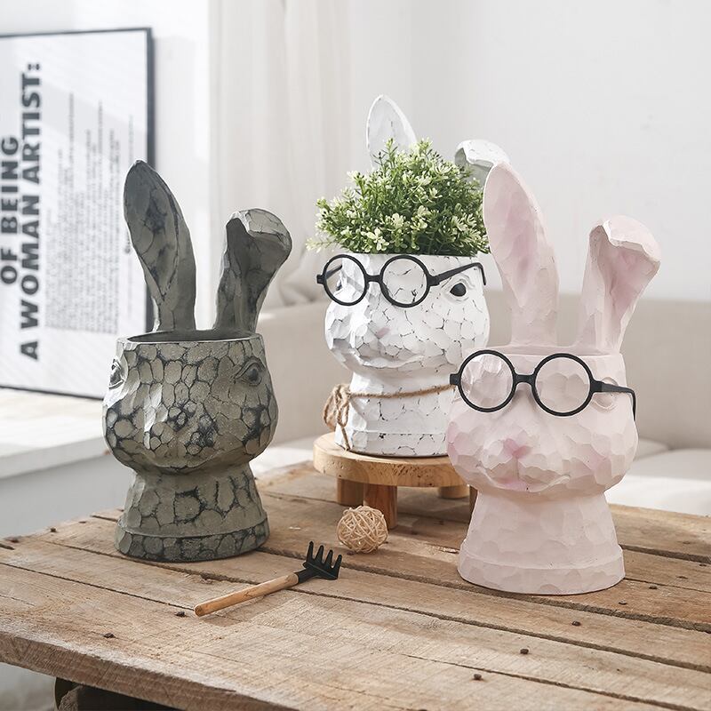 ウサギ型 多肉植物向けの植木鉢オブジェ