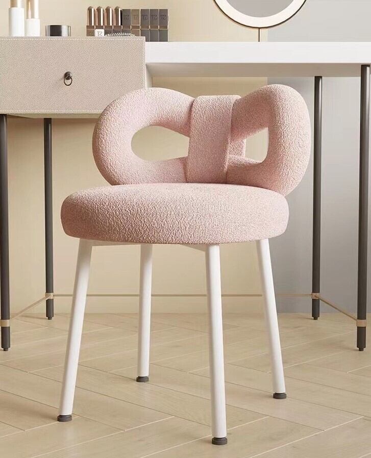 蝶結びの形の背もたれが特徴のドレッシングチェアです。コンパクトなサイズで、さまざまな空間に合います。