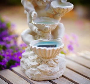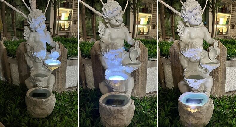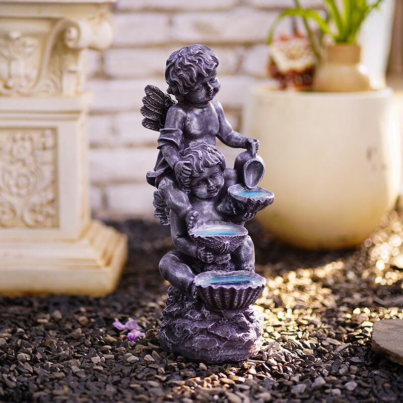 レトログレー調 天使のガーデンオーナメント 置物 ガーデンライト