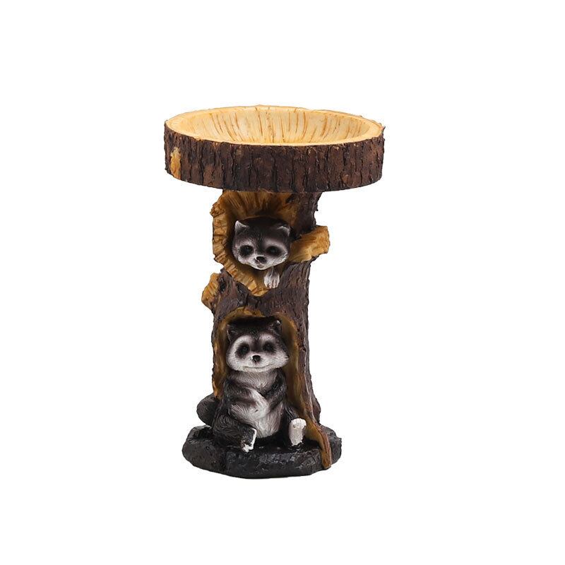 アライグマ彫刻のガーデニングオブジェ バードバス・バードフィーダー
