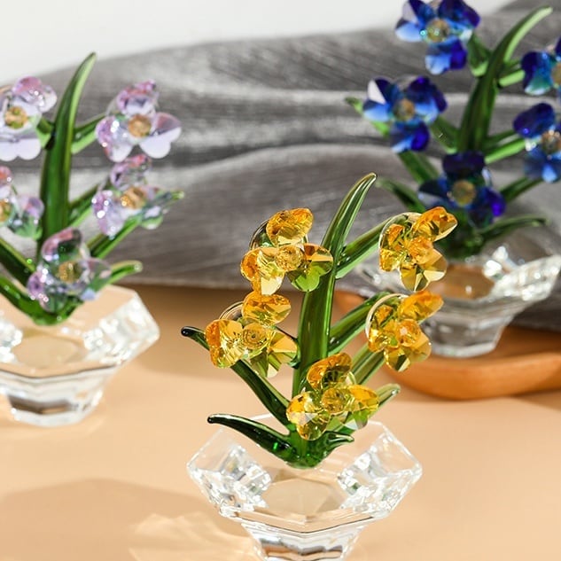 クリスタルガラスの水仙 きらきら輝く花 置物 記念日 お祝い
