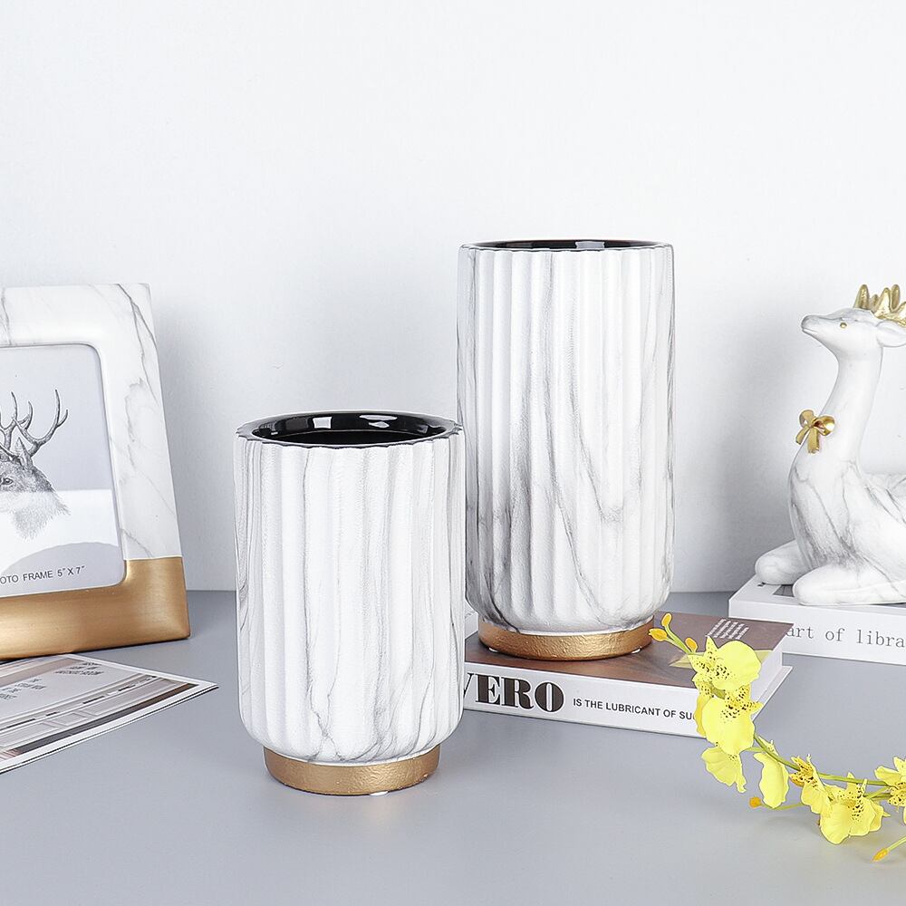 大理石パターン ホワイトフラワーベース 花瓶 フラワースタンド セラミック製 割れにくい