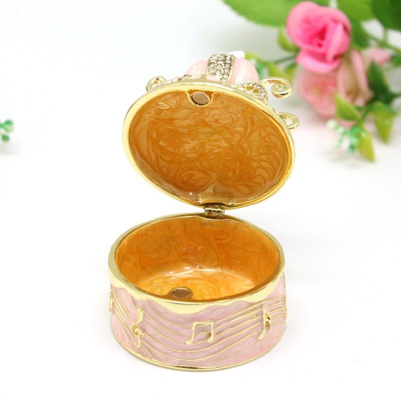 シンデレラの世界を再現したジュエリーボックスです。ゴールドの音符とカボチャの馬車が華やかさを演出し、大切な小物の保管に最適です。卒業祝いや就職祝いにもぴったりなアイテムです。