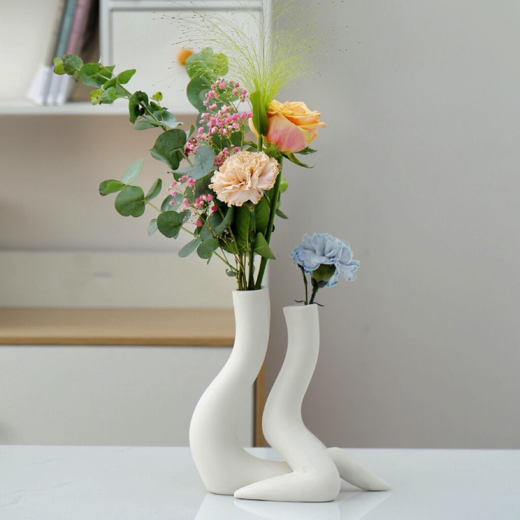 2つの異なるサイズの花瓶は、幅広い花材に対応し、