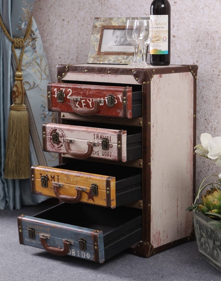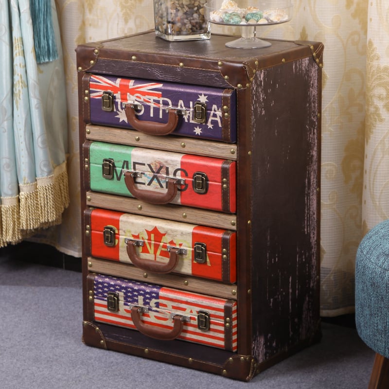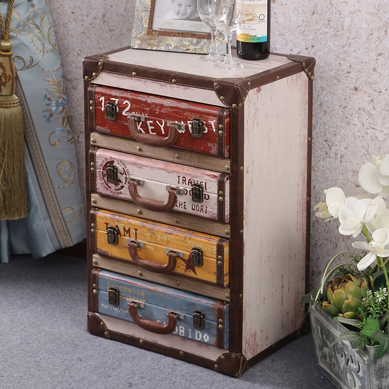 チェスト ヴィンテージ トランク調 タンス 引き出し おしゃれ かわいい 収納 ロータイプ アメリカン雑貨 レトロ リビングルーム 店舗