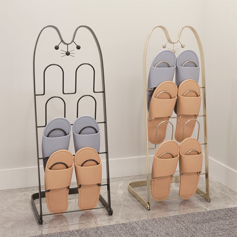 かわいい猫のスリッパラックです。折り畳み可能でスリムなデザインなので、場所をとらずに設置ができます。最大4足までスリッパを置くことができるので、家族やお客様のためにも便利です。金属製なので丈夫で長持ちし、玄関やリビングなどの場所にぴったりです。猫のデザインはとてもかわいく、お部屋のアクセントにもなります。ぜひ、かわいい猫のスリッパラックを使って、おしゃれで便利な生活をお楽しみください。