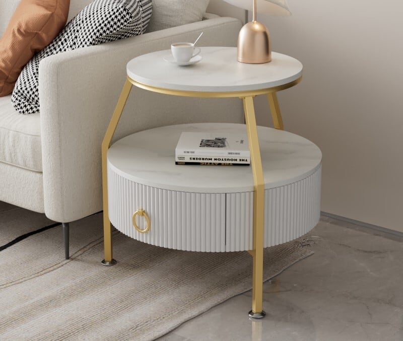 サイドテーブル 2段 収納キャビネット 付き おしゃれ かわいい コーヒーテーブル エンドテーブル ソファーテーブル ゴールド ホワイト
