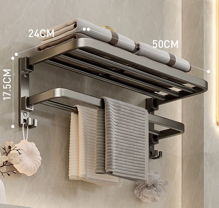 タオルラック 接着式 折り畳み ランドリーラック タオルハンガー 付き ランドリー収納 棚 ラック 収納 洗面所 脱衣所 洗濯物 防食 防錆