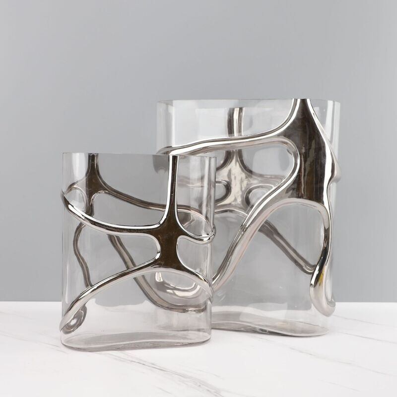 ガラス花瓶 ゴールド シルバー 装飾 フラワーベース 花瓶 おしゃれ シンプル 花器 観葉植物 インテリア 一輪挿し ギフト プレゼント