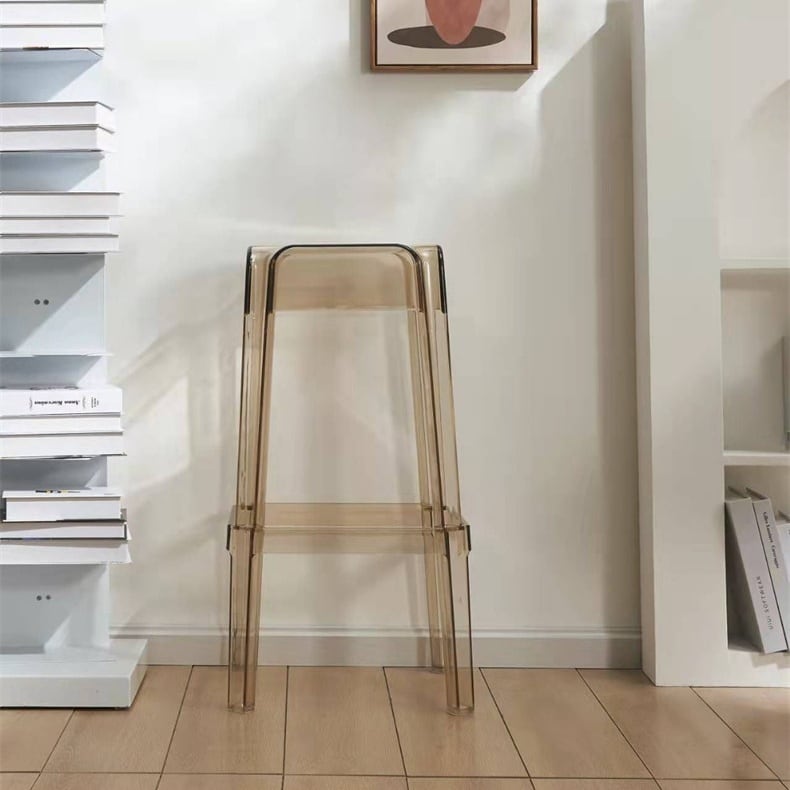 シンプルでスタイリッシュなデザインのハイスツール。65cmと75cmの2つのサイズから選べるので、キッチンやカウンターに合わせてお選びいただけます。背もたれなしでコンパクトなので、場所をとりません。透明なクリアカラーとグレー、アンバーの3種類からお好みのカラーをお選びいただけます。
