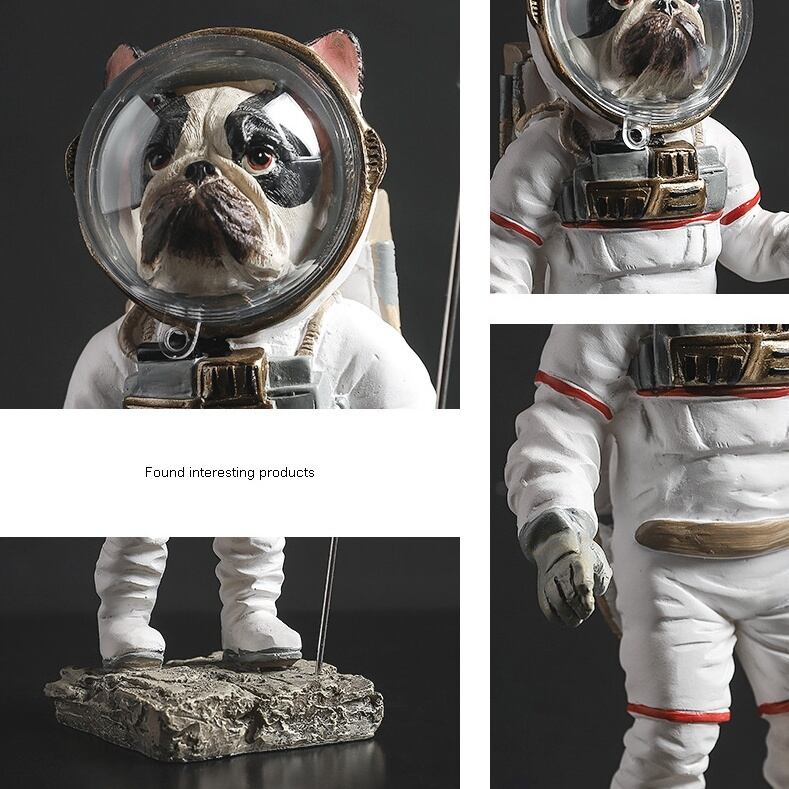 宇宙に憧れるブルドッグが、船外活動をしている様子を再現したインテリア雑貨です。お座りしている姿勢が可愛らしく、玄関やリビングなど、様々な場所で存在感を放ちます。存在感だけでなく、リアルな造形と彫刻によって、ブルドッグの表情や毛並みなど細部まで再現されています。