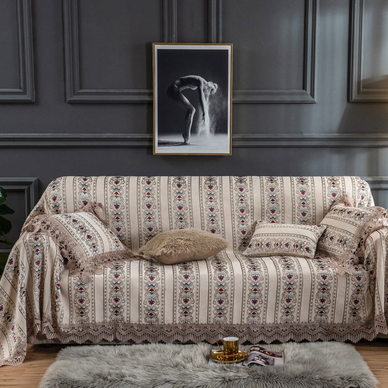 ソファーカバー 欧風 マルチカバー 2人掛け 3人掛け 多機能 ヨーロッパ風 肘あり 肘なし兼用 エレガント レトロ レース 裾 リビングルーム