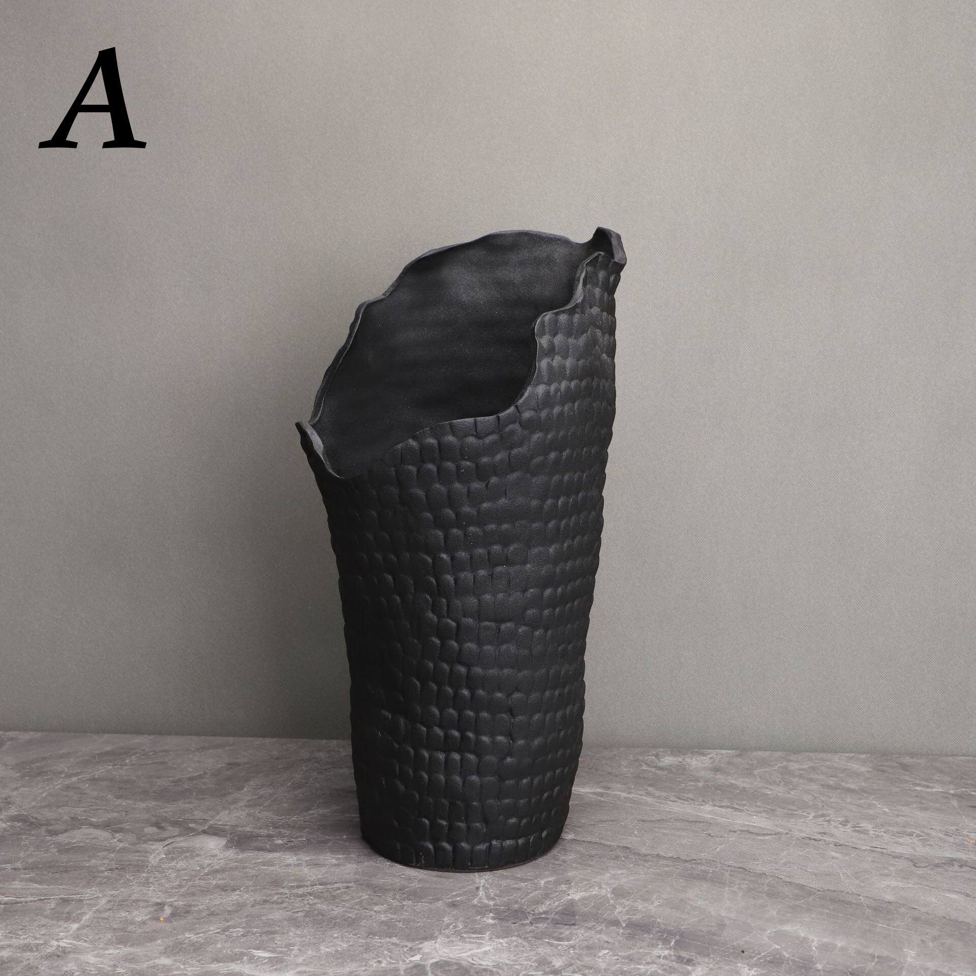 白と黒の2色展開で、どんな雰囲気にも合わせやすいです。魚鱗の模様が入っていることで、個性的なデザインになっています。玄関やリビングなど、どの場所でも映える存在感です。おしゃれな花瓶をお探しの方にはぜひオススメです。