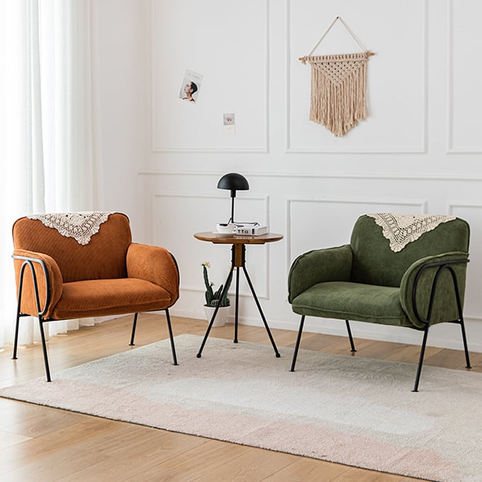 ソファー チェア 1人掛け おしゃれ シンプル モダン インテリア 椅子 コーデュロイ生地 高反発クッション 防錆 高耐荷重 オレンジ ブルー