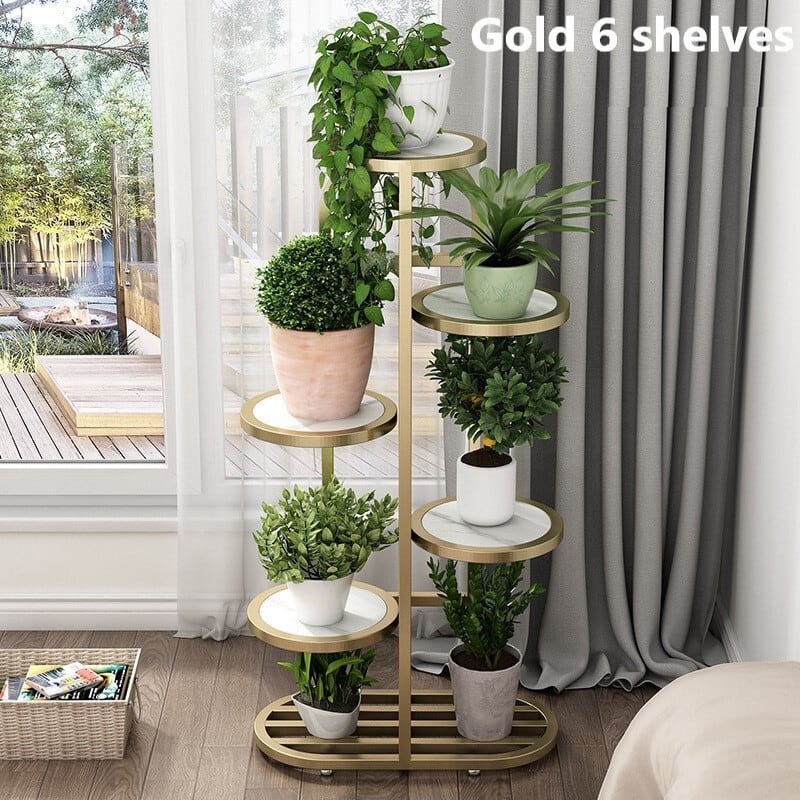 プランタースタンド アイアンフレーム 4段 5段 6段 フラワースタンド フラワー ラック フットパッド 多肉植物 観葉植物 ゴールド ブラック