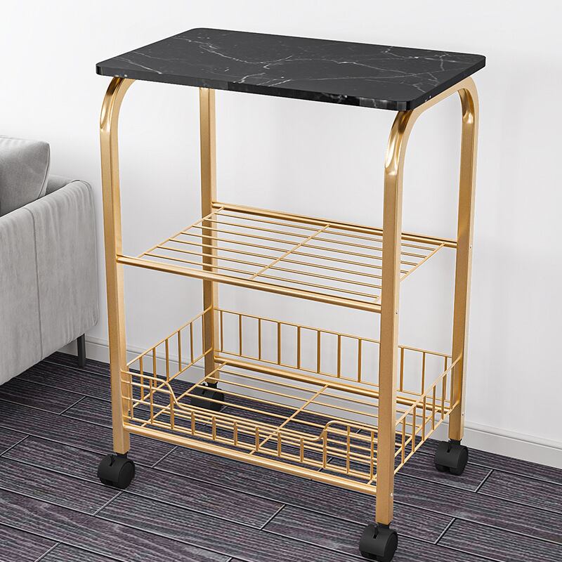 収納 ラック 多機能 北欧 エレガント キッチン ワゴン サイドテーブル おしゃれ オープン シェルフ 大理石模様 キャスター 付き ゴールド