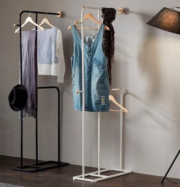 ハンガーラック シンプル スタイリッシュ おしゃれ 耐荷重 省スペース スリム 小物フック 付き 玄関 リビング 寝室 ホワイト ブラック