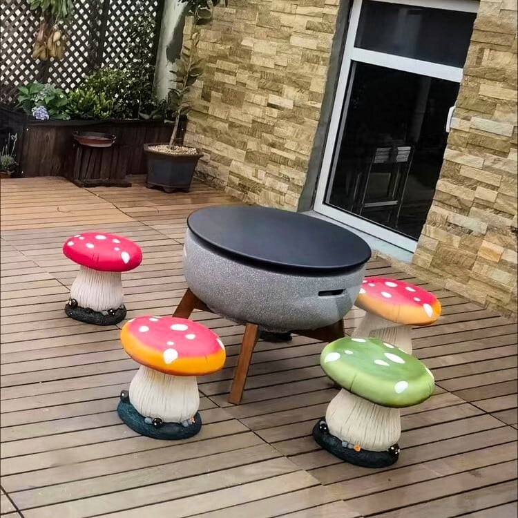 スツール キノコ型 コンパクト オットマン ドレッサー チェア 化粧 椅子 手彩色 樹脂 店舗 行楽地 歓楽地 レッド オレンジ グリーン