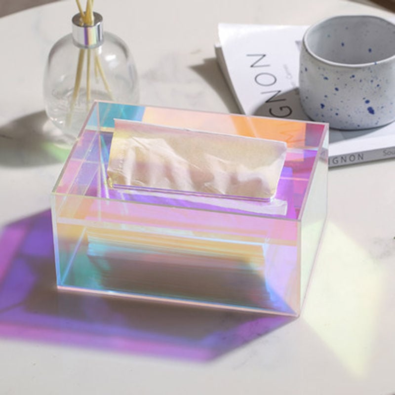 ティッシュボックス 透明感 アクリル製 おしゃれ インテリア レインボー ティッシュケース ペーパータオル シンプル クリア オーロラ