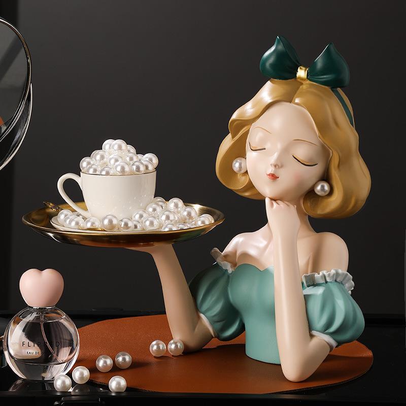 少女 トレイ 小物入れ 装飾 オブジェ インテリア 置物 雑貨 玄関 リビング 寝室 おしゃれ 北欧 モダン シンプル ブルー グリーン ピンク