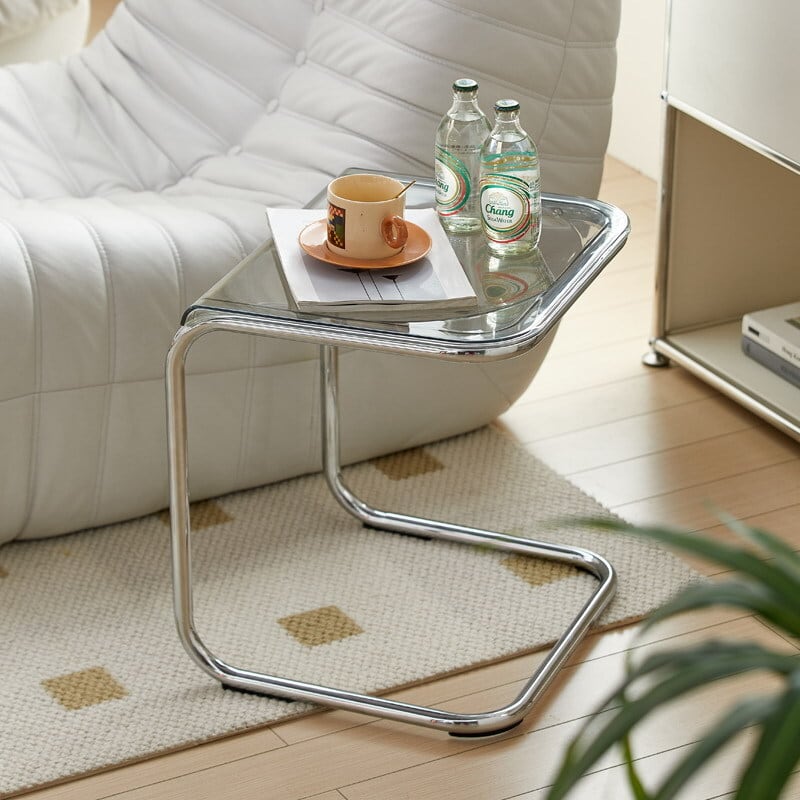 メリハリのあるデザインが特徴のサイドテーブル。ワンランク上のリビングや寝室を演出します。スケルトンで透明感があり、邪魔にならない存在感が魅力。クリア、ブラウン、グレー、ホワイトと豊富なカラーバリエーションで、お部屋の雰囲気に合わせてお選びいただけます。