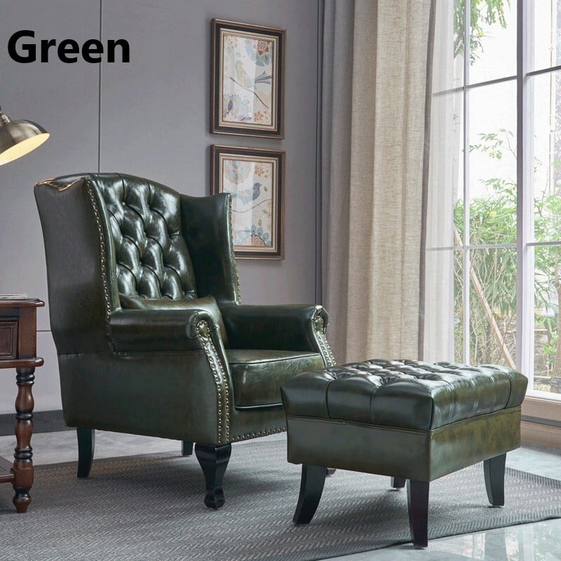 ソファ チェア アメリカンレトロ オットマン 付き 人間工学 背もたれ 牛革 ヴィンテージ 高級感 おしゃれ インテリア 一人掛け イエロー