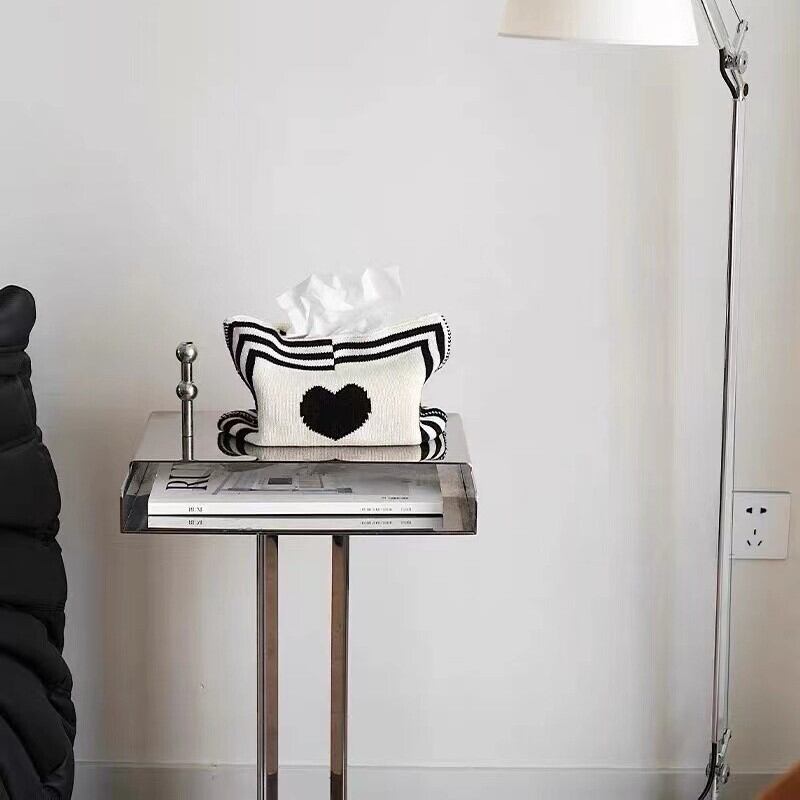 ティッシュカバー ツートンカラー 白 黒 ハート柄 チェック柄 おしゃれ かわいい インテリア クラシック 箱無し 贈り物 プレゼント