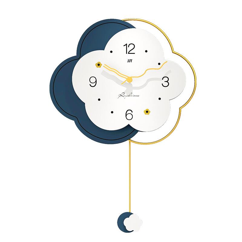花のモチーフが美しい、おしゃれな掛け時計です。シンプルなデザインと見やすい文字盤が特徴で、リビングや寝室などのインテリアにぴったりです。ホワイトとネイビーの組み合わせが上品で、どんなお部屋にも馴染みます。振り子時計やアナログ時計好きの方にもオススメです。