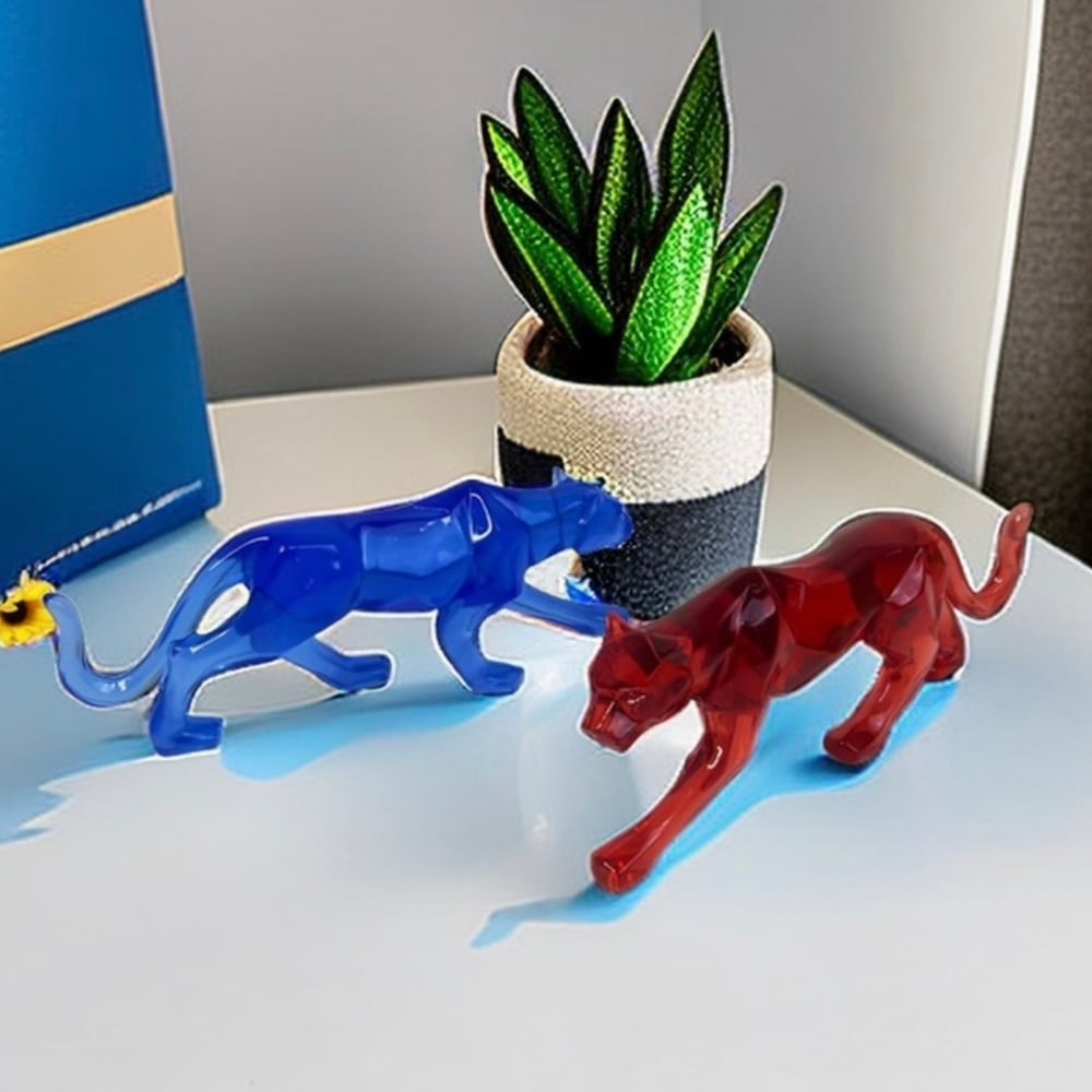 オブジェ ヒョウ 置物 透明 幾何学的 オーナメント アート おしゃれ インテリア ギフト プレゼント 合成樹脂 スタイリッシュ モダン クリア