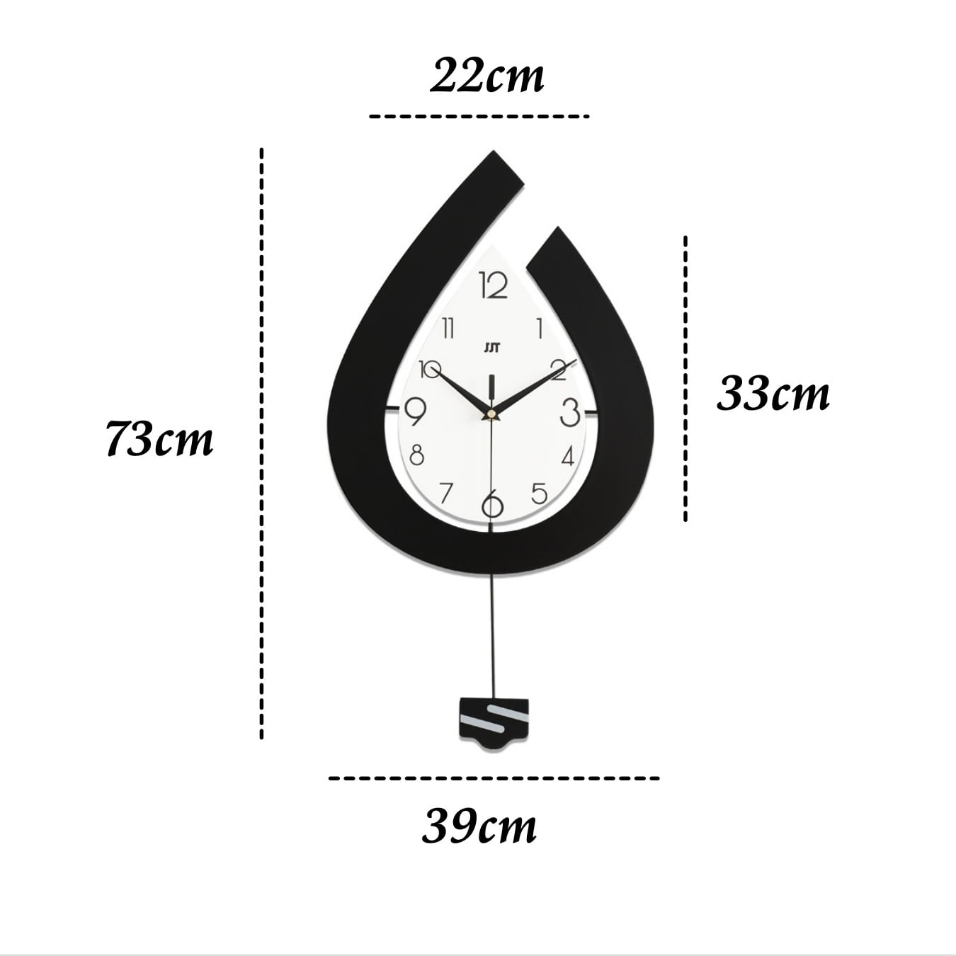 エレガントでシンプルなデザインの雫型(水滴)のブラッククロック。見やすい文字盤と静かな振り子時計機能が特徴です。リビングやベッドルームなど、おしゃれなインテリアにぴったりなアイテムです。電池式で、静音設計なので、夜も安心してご使用いただけます。