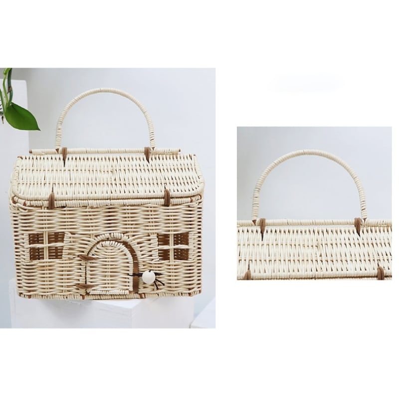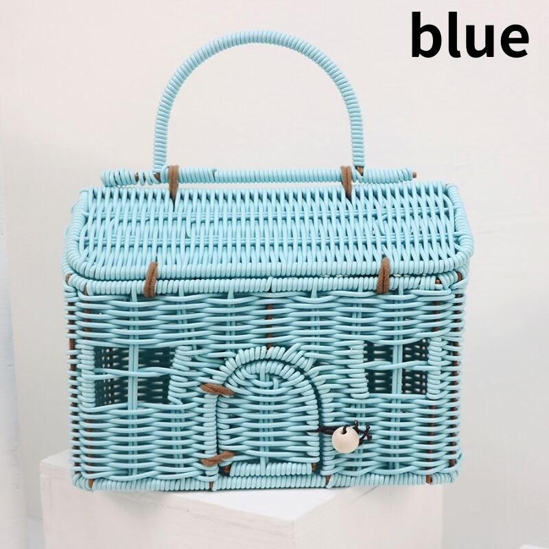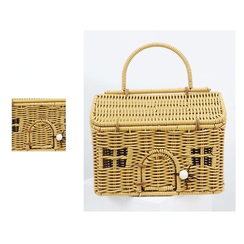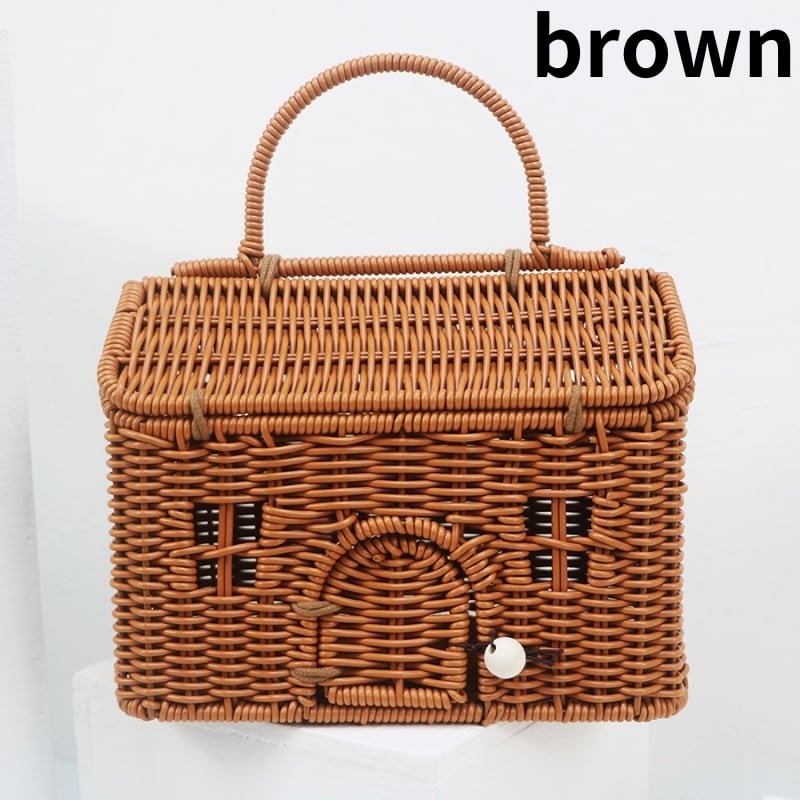 収納 バスケットハウス型 ラタン 収納ケース おしゃれ 蓋つき PPラタン 籐かご 収納 ボックス 手提げ カゴ 小物入れ インテリア 装飾品