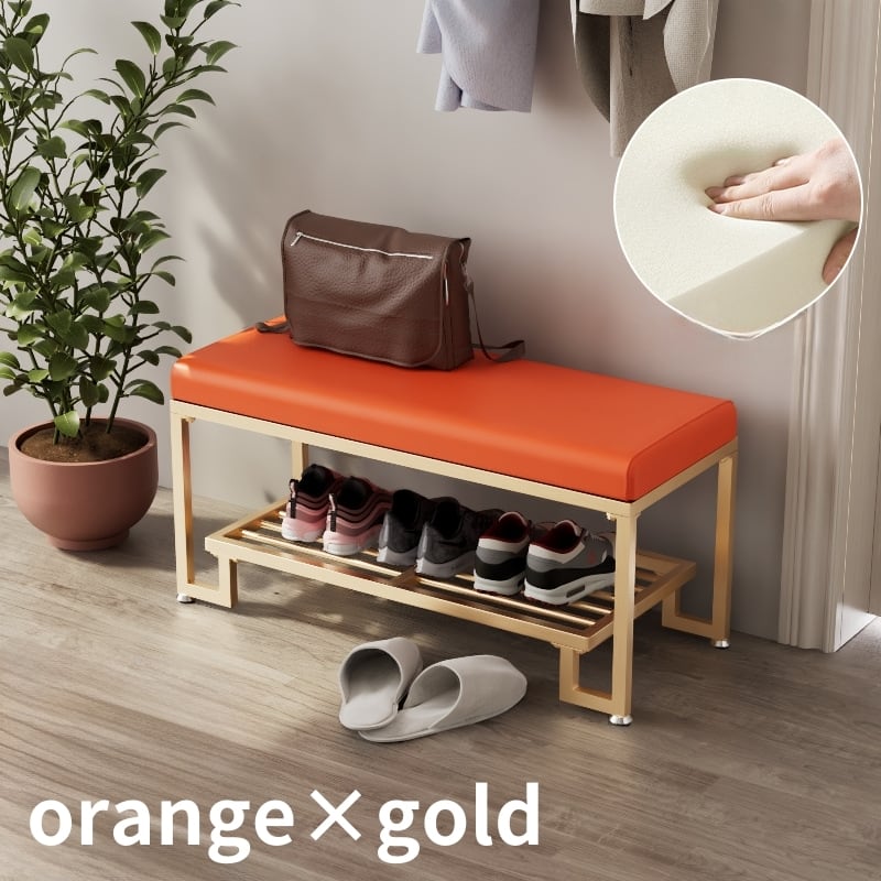 ロング スツール PUレザー 靴交換 幅 80cm チェア シューズ ラック 付き おしゃれ かわいい ベンチシート 玄関 収納 ピンク オレンジ