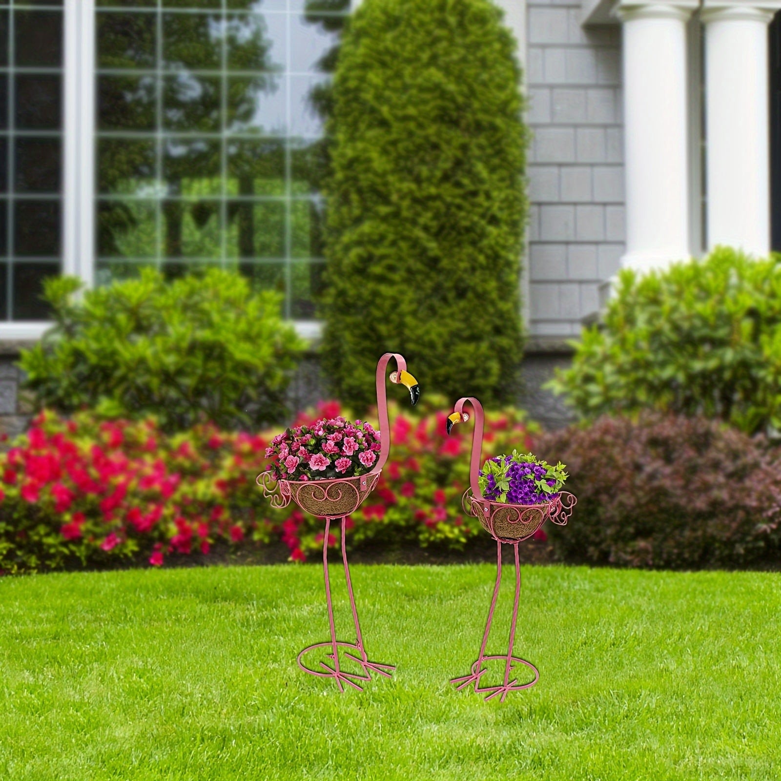 植木鉢 フラワーバスケット プランター 2個セット ピンク 曲線 錆びにくい メタル 孔雀 ピーコック 鳥 家の装飾 庭 ガーデン インテリア