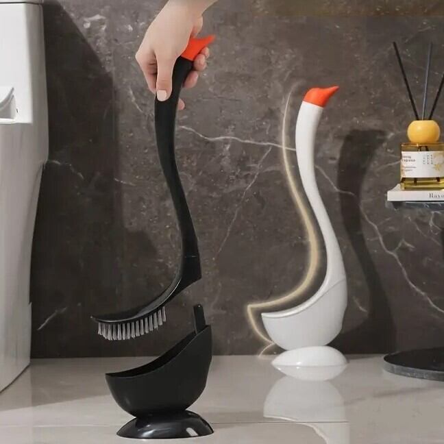トイレブラシ ユニーク 白鳥 機能性 おしゃれ かわいい スリム 地面式 収納 ケース 付き 掃除 トイレ 用品 清潔 白 ブラック ブルー 4-7
